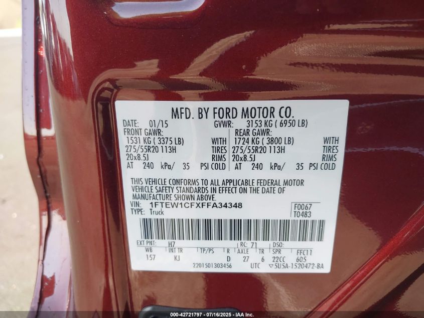 2015 FORD F-150 | 1FTEW1CFXFFA34348