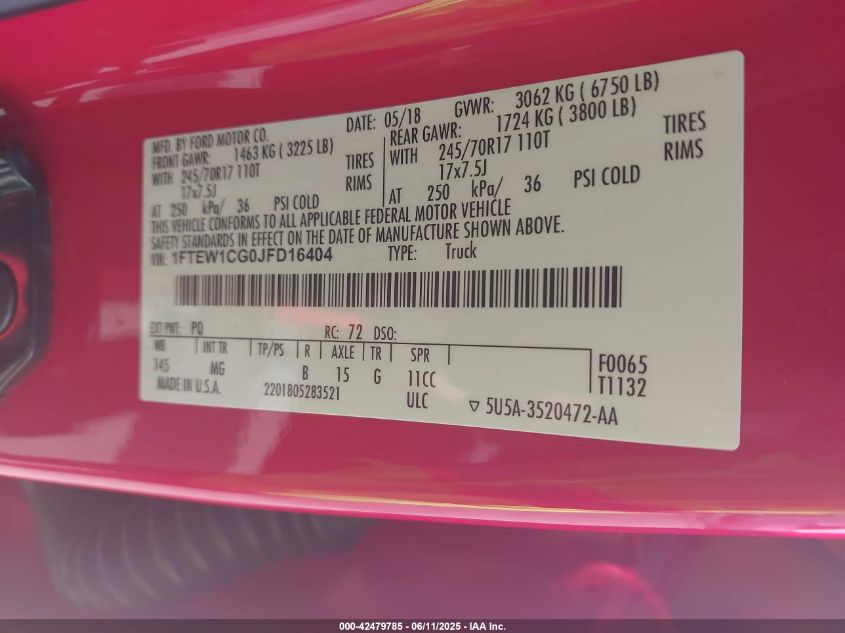 2018 FORD F-150 | 1FTEW1CG0JFD16404