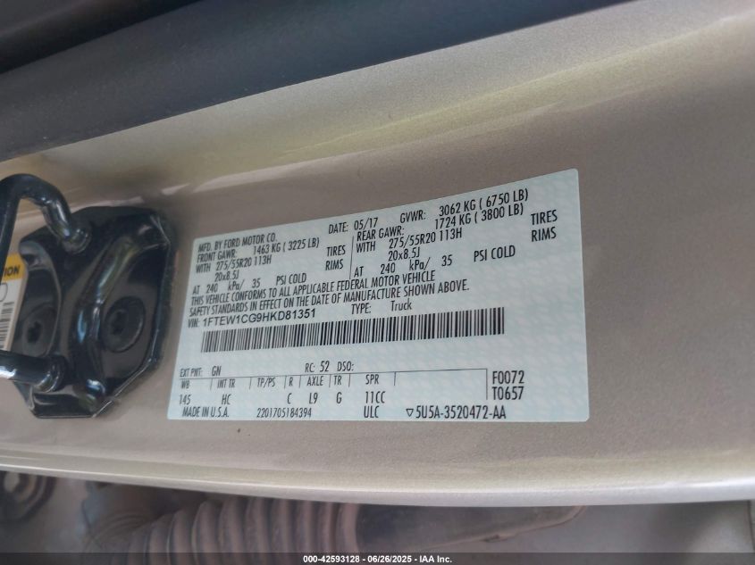 2017 FORD F-150 | 1FTEW1CG9HKD81351