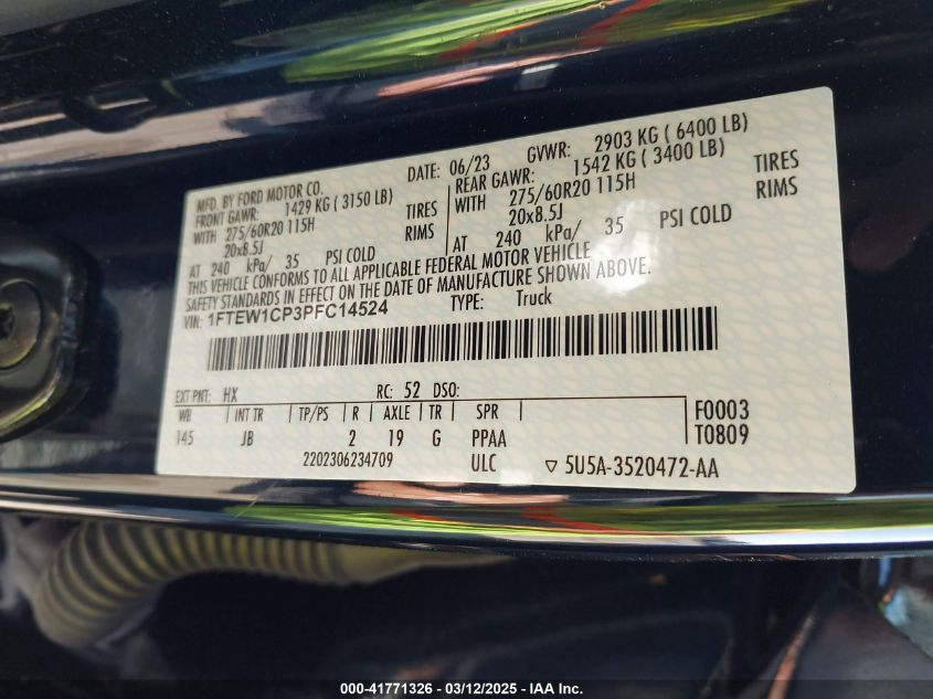 2023 FORD F-150 | 1FTEW1CP3PFC14524