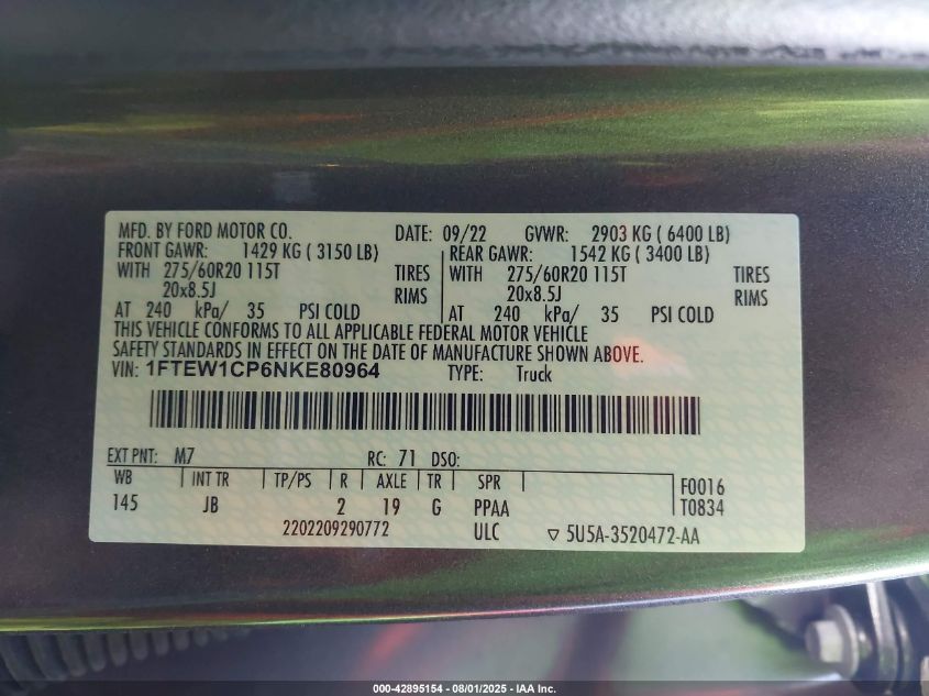 2022 FORD F-150 | 1FTEW1CP6NKE80964