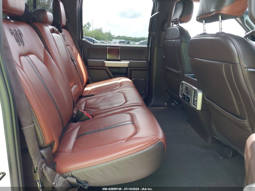 Interior trims varied widely across trims, from work-grade vinyl in XL to King Ranch and Platinum editions with two-tone premium leather, wood accents, ambient lighting, and advanced infotainment (SYNC 3 with 8” touchscreen). Later years included B&O audio, heated/cooled seats, rear sliding glass with defrost, and twin-panel moonroof.