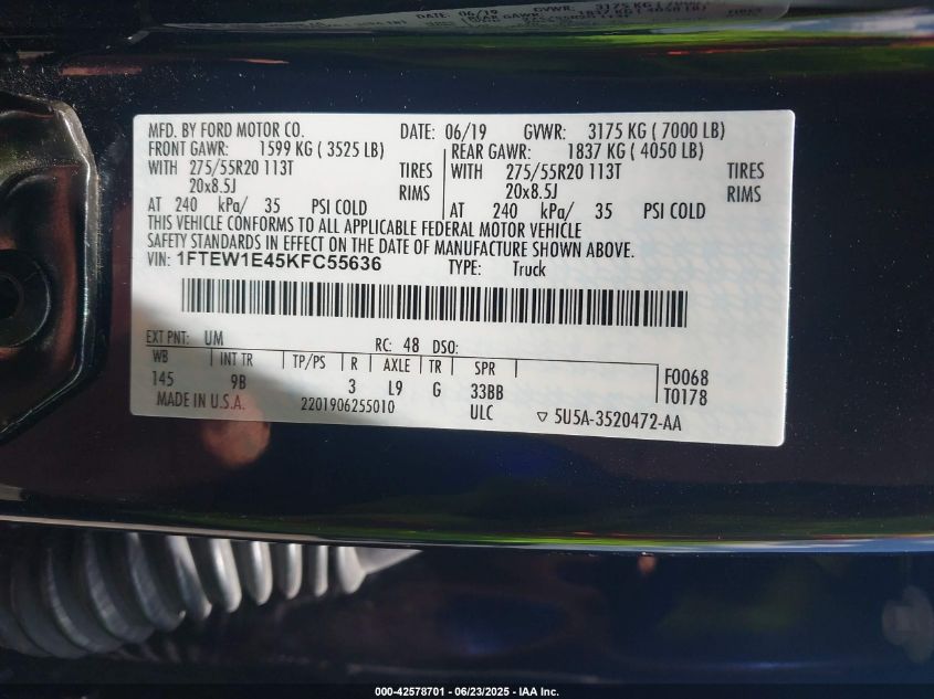 2019 FORD F-150 | 1FTEW1E45KFC55636