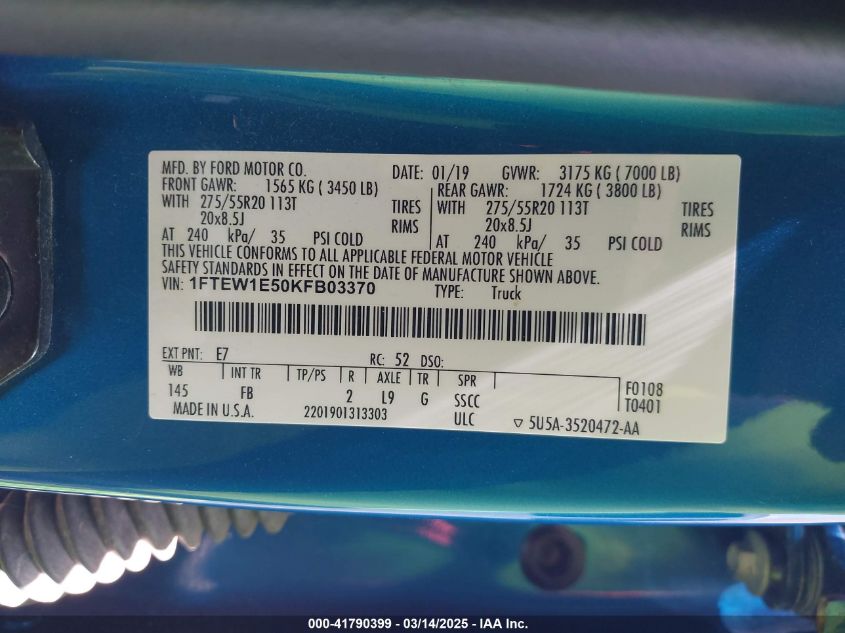 2019 FORD F-150 | 1FTEW1E50KFB03370