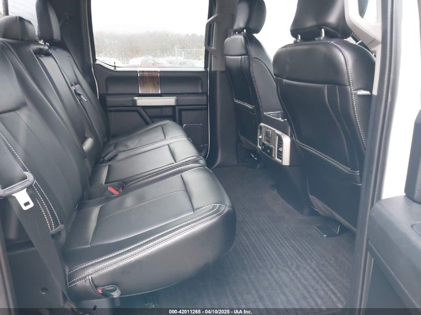 Interior trims varied widely across trims, from work-grade vinyl in XL to King Ranch and Platinum editions with two-tone premium leather, wood accents, ambient lighting, and advanced infotainment (SYNC 3 with 8” touchscreen). Later years included B&O audio, heated/cooled seats, rear sliding glass with defrost, and twin-panel moonroof.