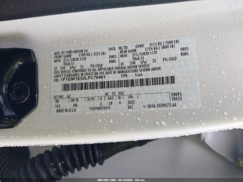 2020 FORD F-150 | 1FTEW1E52LFC70461