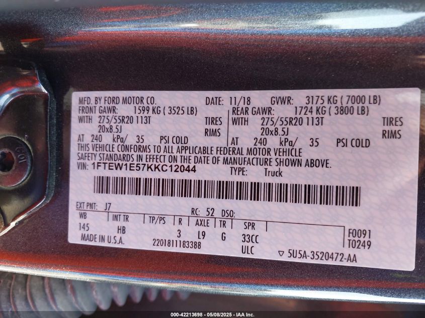 2019 FORD F-150 | 1FTEW1E57KKC12044