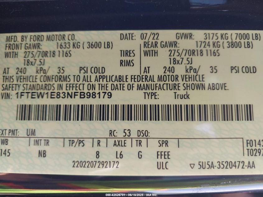2022 FORD F-150 | 1FTEW1E83NFB98179