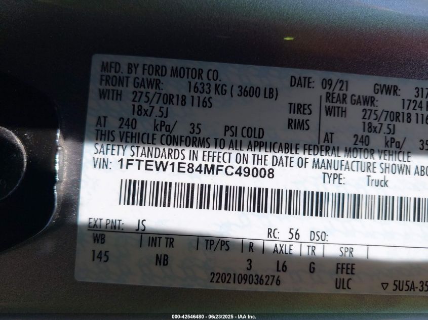 2021 FORD F-150 | 1FTEW1E84MFC49008