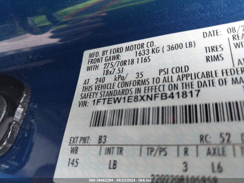 2022 FORD F-150 | 1FTEW1E8XNFB41817