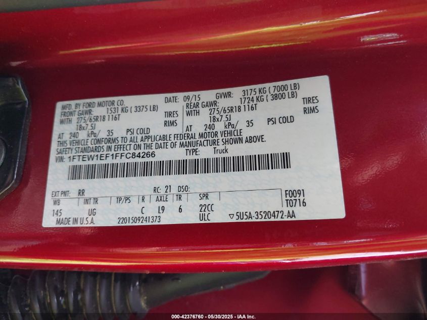 2015 FORD F-150 | 1FTEW1EF1FFC84266