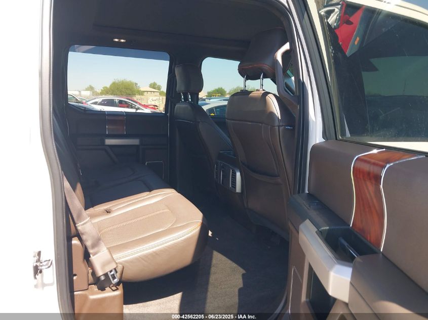 Interior trims varied widely across trims, from work-grade vinyl in XL to King Ranch and Platinum editions with two-tone premium leather, wood accents, ambient lighting, and advanced infotainment (SYNC 3 with 8” touchscreen). Later years included B&O audio, heated/cooled seats, rear sliding glass with defrost, and twin-panel moonroof.