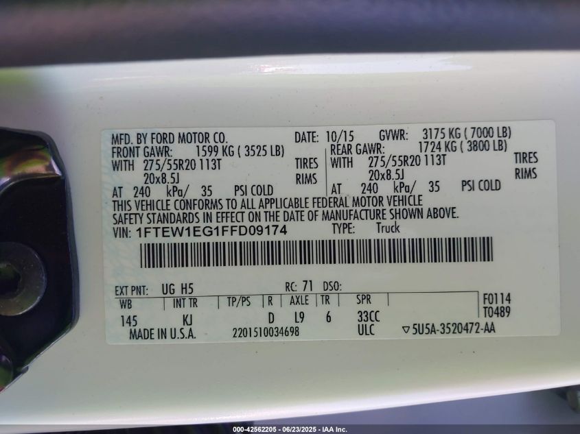 2015 FORD F-150 | 1FTEW1EG1FFD09174