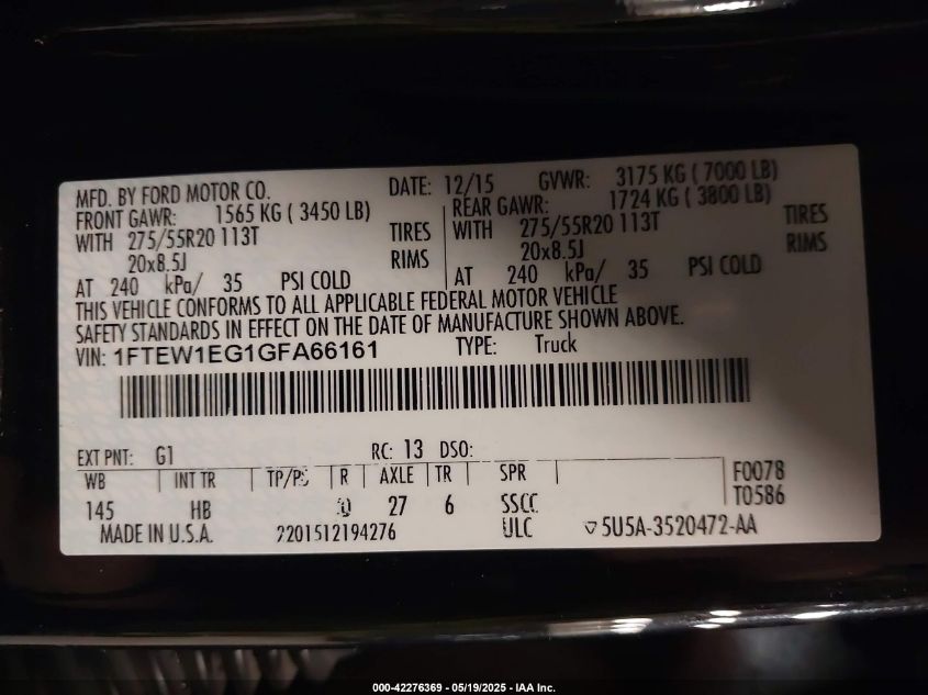 2016 FORD F-150 | 1FTEW1EG1GFA66161
