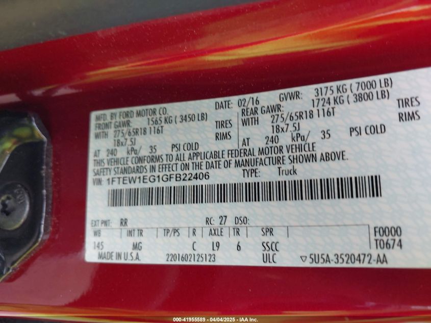 2016 FORD F-150 | 1FTEW1EG1GFB22406