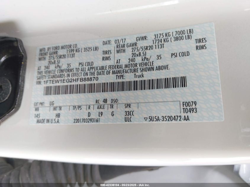 2017 FORD F-150 | 1FTEW1EG2HFB88870
