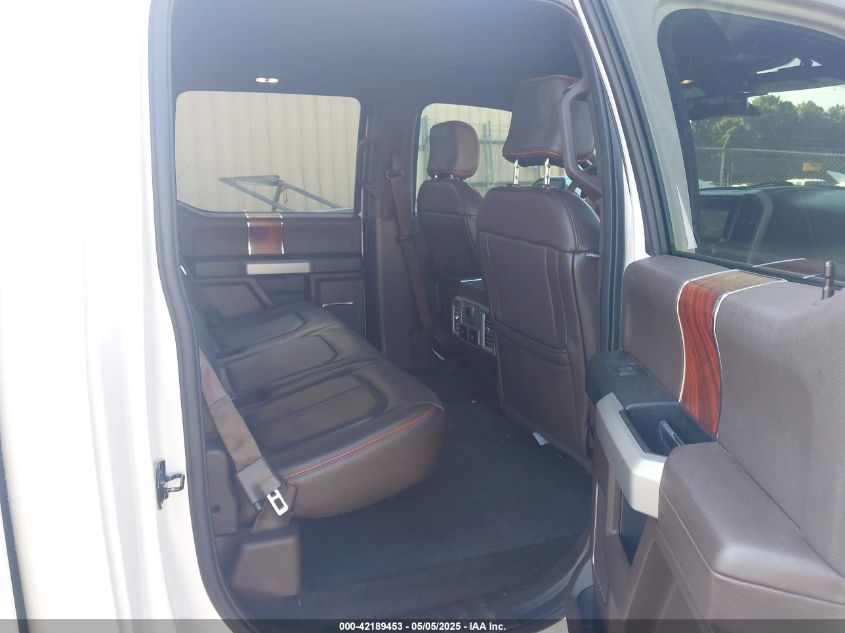 Interior trims varied widely across trims, from work-grade vinyl in XL to King Ranch and Platinum editions with two-tone premium leather, wood accents, ambient lighting, and advanced infotainment (SYNC 3 with 8” touchscreen). Later years included B&O audio, heated/cooled seats, rear sliding glass with defrost, and twin-panel moonroof.