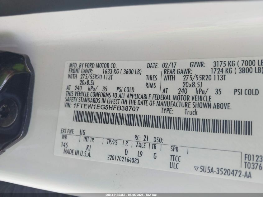 2017 FORD F-150 | 1FTEW1EG5HFB38707