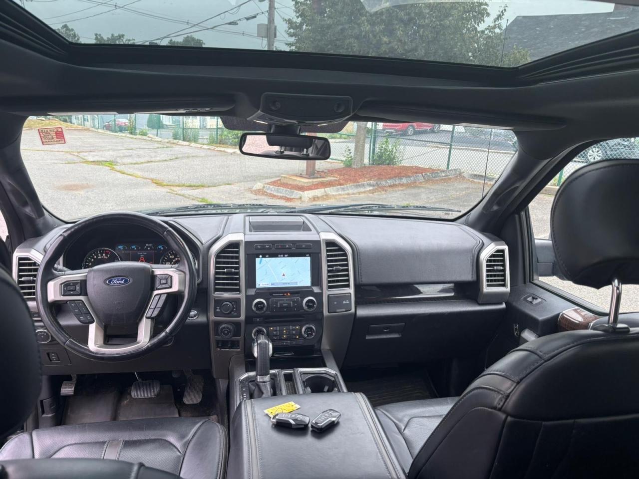 Interior trims varied widely across trims, from work-grade vinyl in XL to King Ranch and Platinum editions with two-tone premium leather, wood accents, ambient lighting, and advanced infotainment (SYNC 3 with 8” touchscreen). Later years included B&O audio, heated/cooled seats, rear sliding glass with defrost, and twin-panel moonroof.