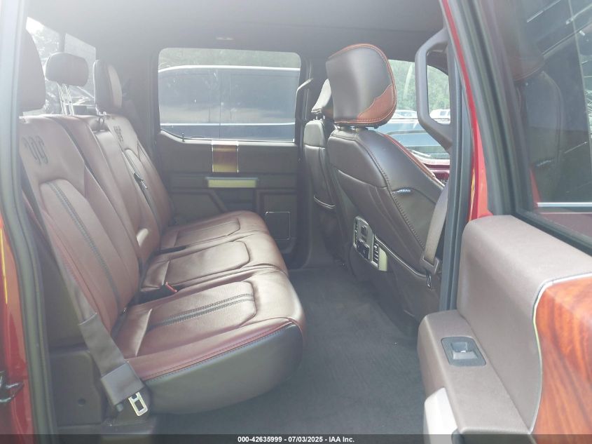 Interior trims varied widely across trims, from work-grade vinyl in XL to King Ranch and Platinum editions with two-tone premium leather, wood accents, ambient lighting, and advanced infotainment (SYNC 3 with 8” touchscreen). Later years included B&O audio, heated/cooled seats, rear sliding glass with defrost, and twin-panel moonroof.