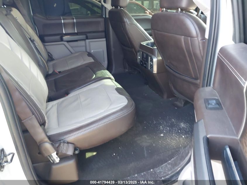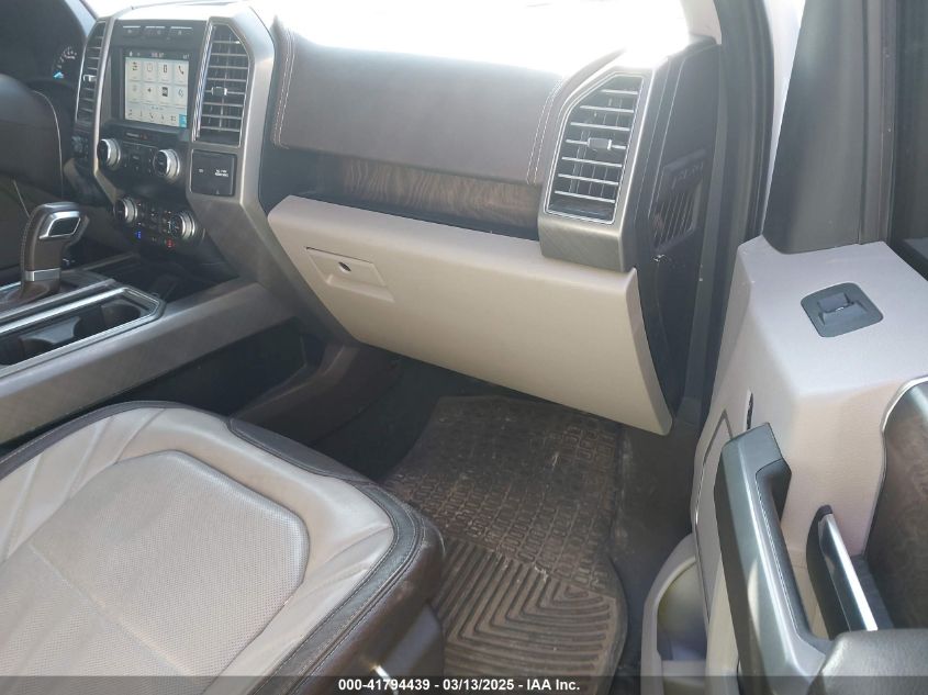 Interior trims varied widely across trims, from work-grade vinyl in XL to King Ranch and Platinum editions with two-tone premium leather, wood accents, ambient lighting, and advanced infotainment (SYNC 3 with 8” touchscreen). Later years included B&O audio, heated/cooled seats, rear sliding glass with defrost, and twin-panel moonroof.