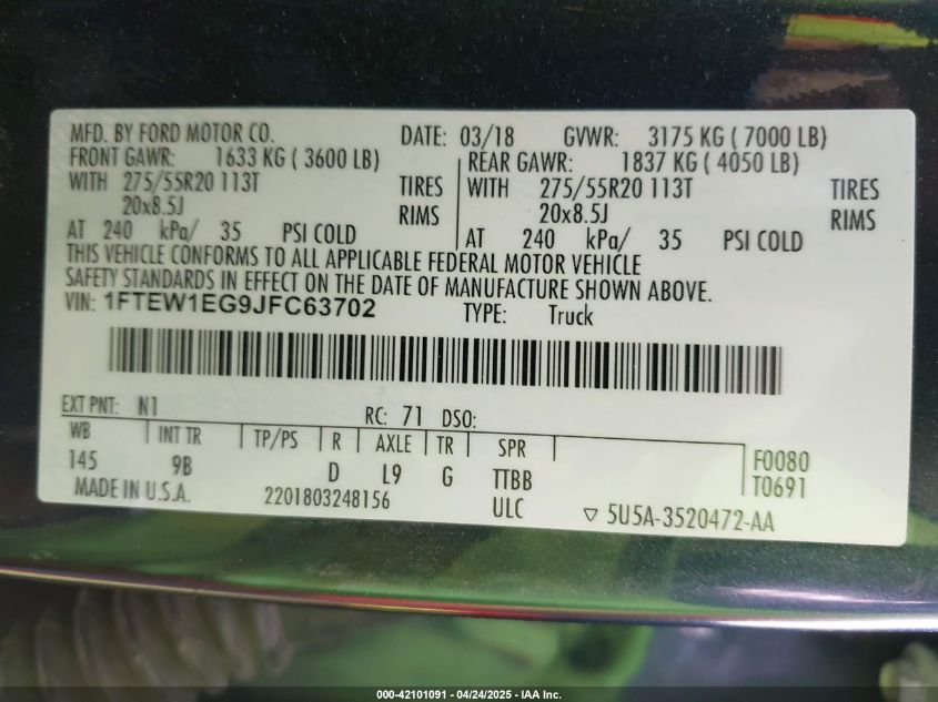 2018 FORD F-150 | 1FTEW1EG9JFC63702