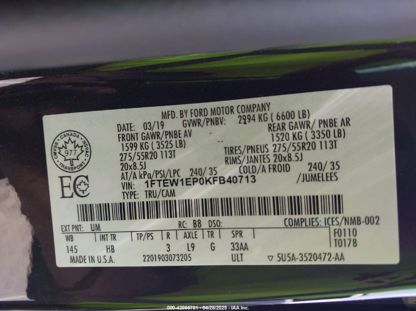 2019 FORD F-150 | 1FTEW1EP0KFB40713