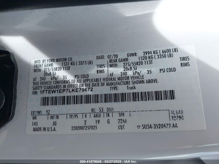 2020 FORD F-150 | 1FTEW1EP7LKE79672