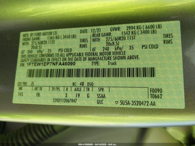 2022 FORD F-150 | 1FTEW1EP7NFA46090