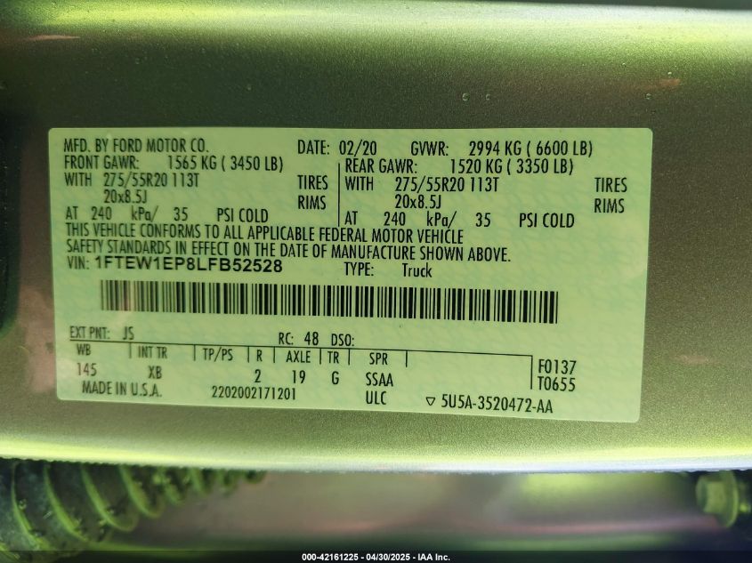 2020 FORD F-150 | 1FTEW1EP8LFB52528