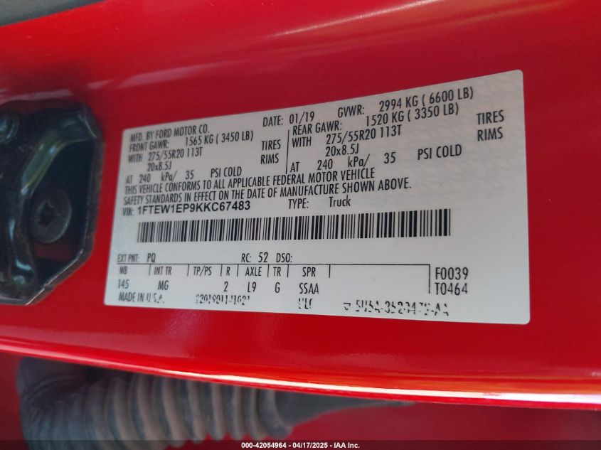 2019 FORD F-150 | 1FTEW1EP9KKC67483