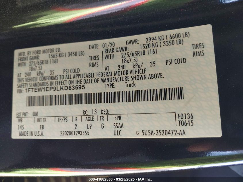 2020 FORD F-150 | 1FTEW1EP9LKD63695