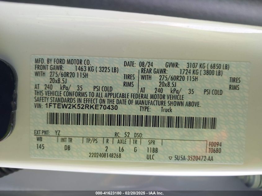 2024 FORD F-150 | 1FTEW2K52RKE70430