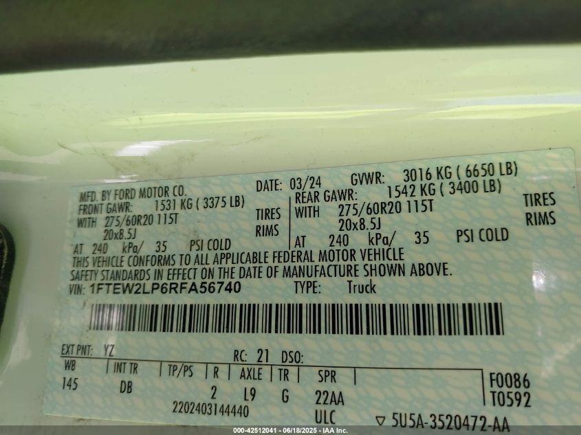 2024 FORD F-150 | 1FTEW2LP6RFA56740