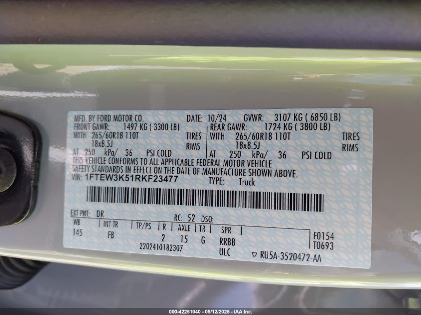 2024 FORD F-150 | 1FTEW3K51RKF23477