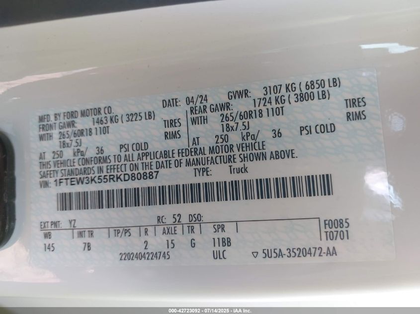 2024 FORD F-150 | 1FTEW3K55RKD80887