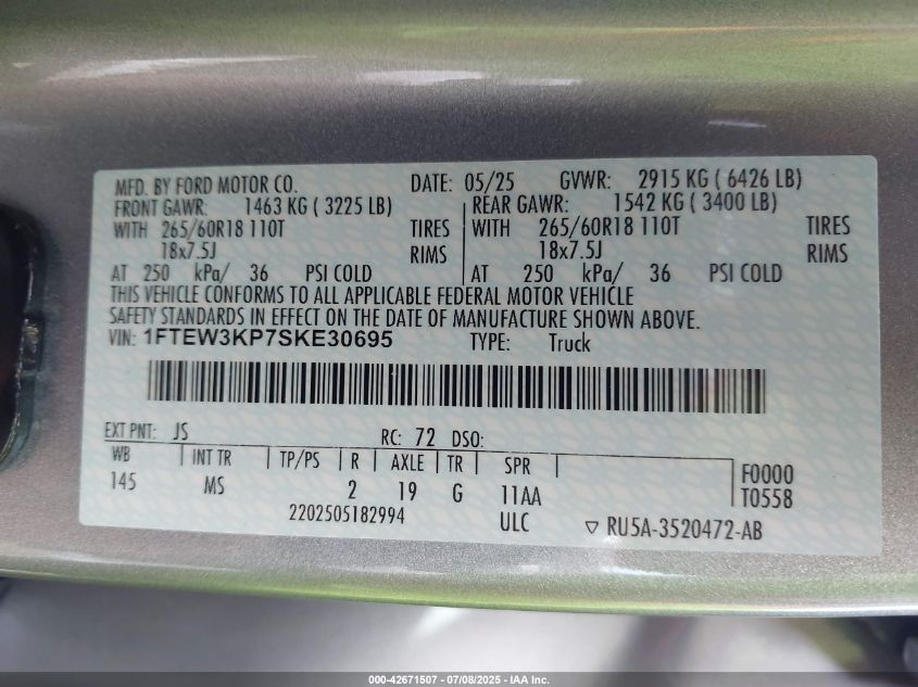 2025 FORD F-150 | 1FTEW3KP7SKE30695