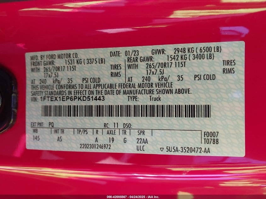 2023 FORD F-150 | 1FTEX1EP6PKD51443