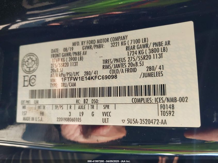2019 FORD F-150 | 1FTFW1E14KFC69098