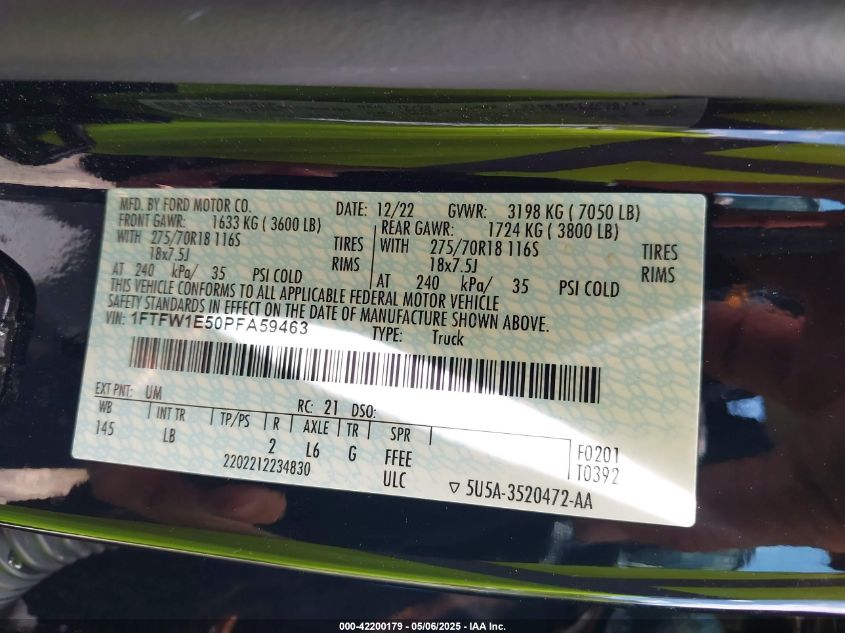 2023 FORD F-150 | 1FTFW1E50PFA59463