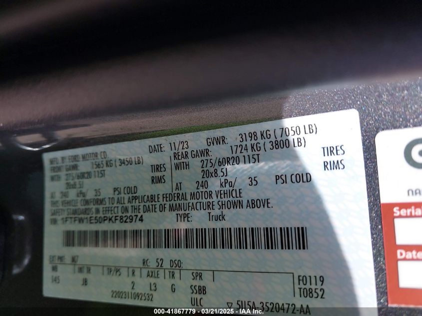 2023 FORD F-150 | 1FTFW1E50PKF82974
