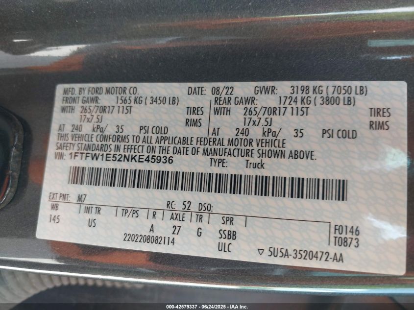 2022 FORD F-150 | 1FTFW1E52NKE45936