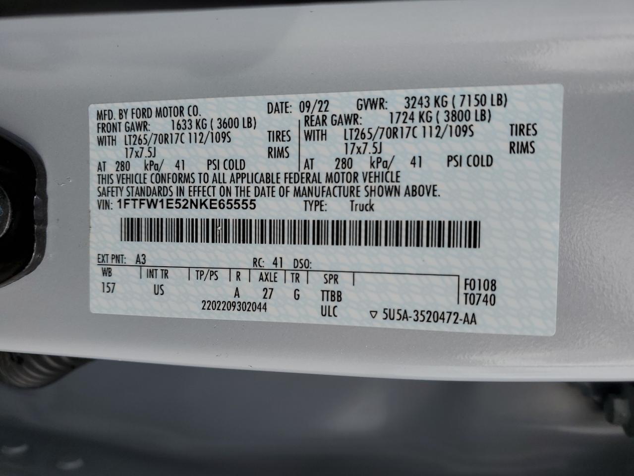 2022 FORD F-150 | 1FTFW1E52NKE65555