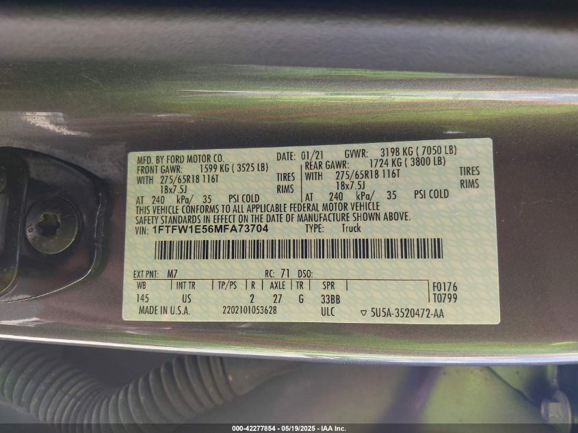 2021 FORD F-150 | 1FTFW1E56MFA73704