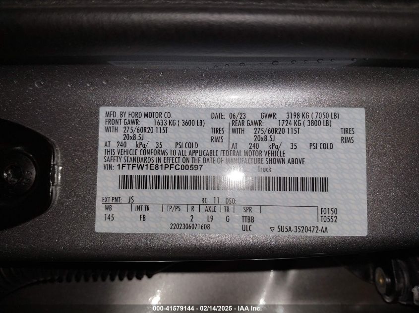 2023 FORD F-150 | 1FTFW1E81PFC00597