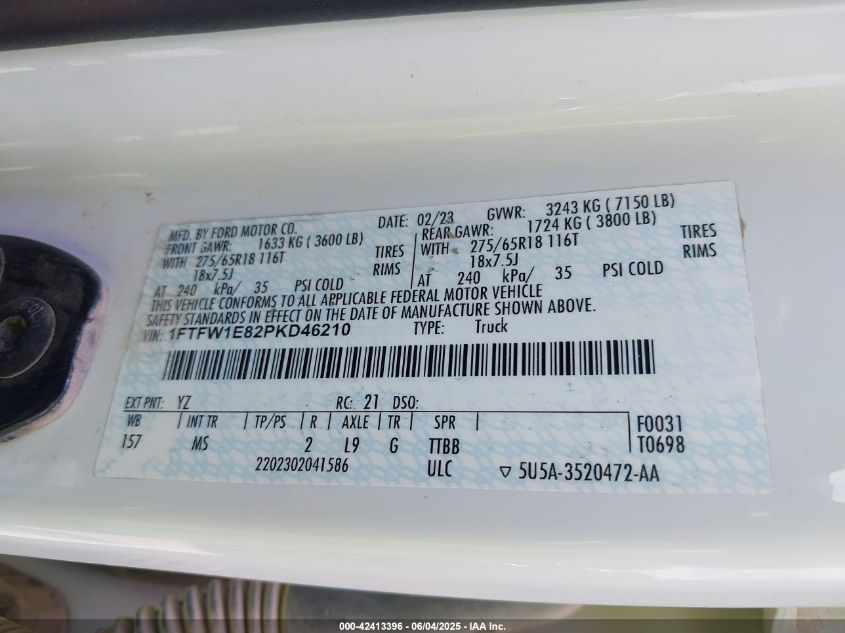 2023 FORD F-150 | 1FTFW1E82PKD46210