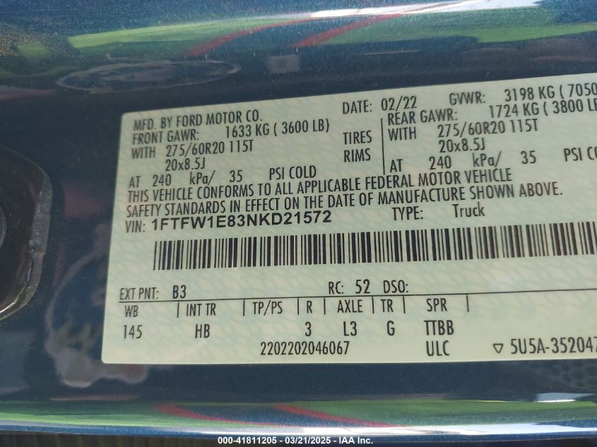 2022 FORD F-150 | 1FTFW1E83NKD21572