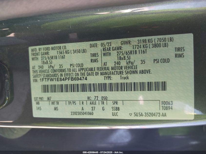 2023 FORD F-150 | 1FTFW1E84PFB69474