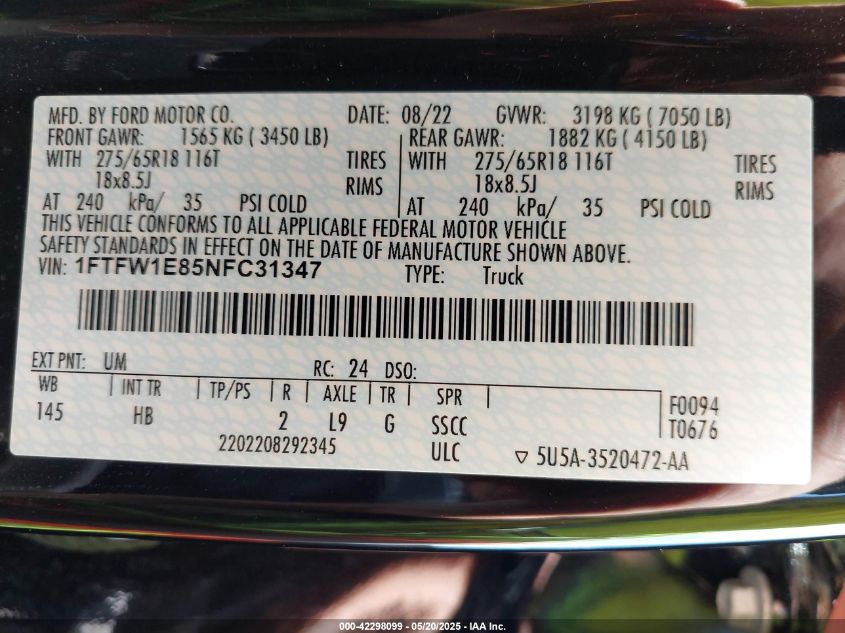 2022 FORD F-150 | 1FTFW1E85NFC31347