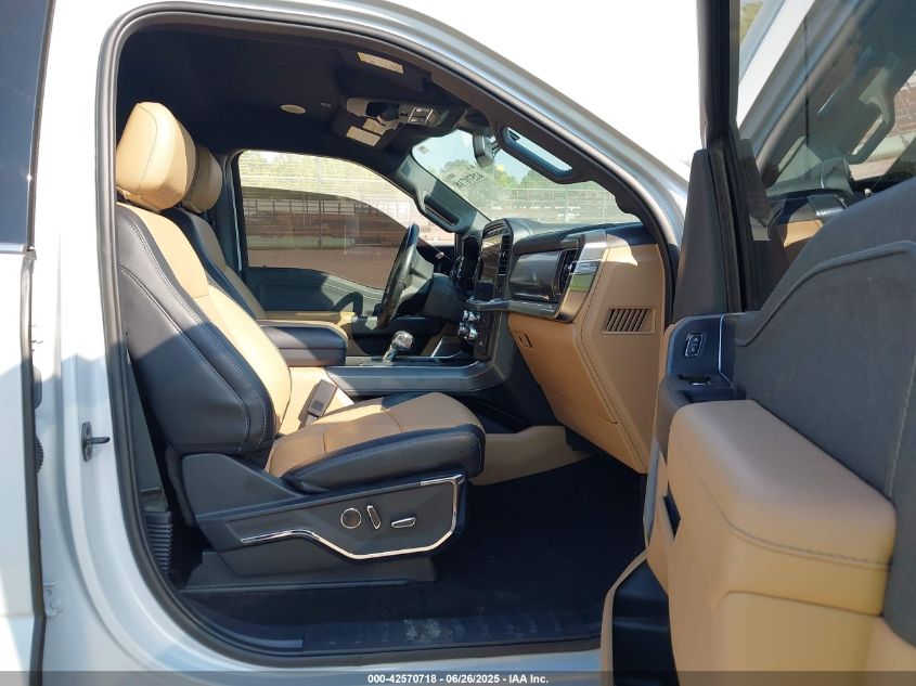 Inside, the F-150 ranges from durable work-grade materials in XL trims to near-luxury experiences in King Ranch, Platinum, Limited, and Lightning trims. Standard interiors feature tough cloth or vinyl upholstery, while higher trims introduce Kingsville leather, Admiral Blue two-tone finishes, and carbon fiber or brushed metal trim pieces. Available equipment includes heated and ventilated massaging seats, full digital gauge clusters, 12-inch SYNC 4 touchscreen systems, fold-flat work surfaces, and even fold-out sleeper front seats for overnight stays.
